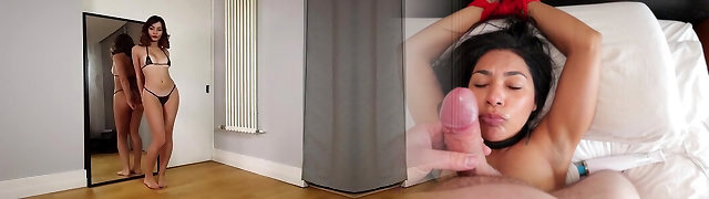 Japanese woman with natural tits sucking her boyfriend's dick
