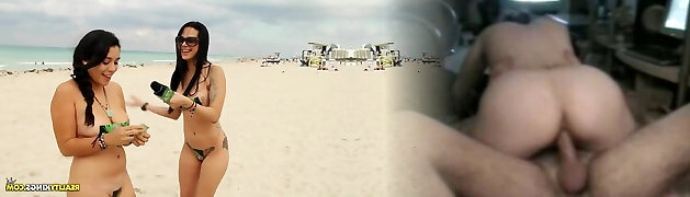 Sexy bikini stunner has fun after the beach while nailing doggy quite hardcore