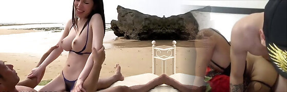 Beautiful dark haired with huge breasts enjoys creampie in outdoor sex, celebrating Japanese greatest JAV!