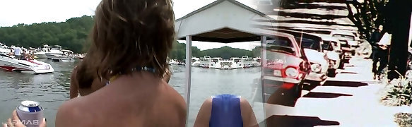 Spring break bikini stunners flashing their sexy tits on the lake