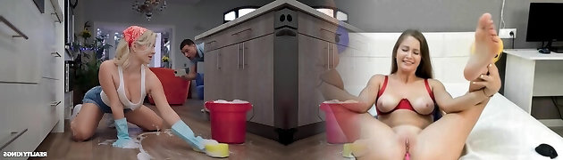Buxom Cougar Slimthick Vic makes cock hard even while cleaning