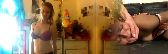 Skinny Blonde & Stepbrother Fucked While Watching Porno
