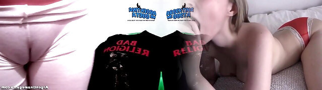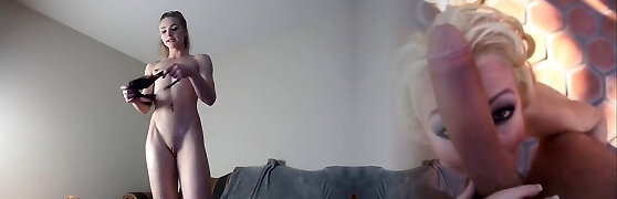 Sandy-haired Tiktoker With Cameltoe Pink Pussy Make Deepthroat Blowjob And Gets Spunk In Mouth