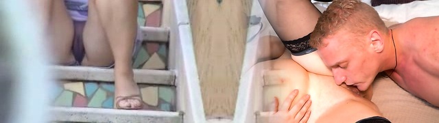 Inebriated curvaceous housewife of my neighbor flashes her cameltoe on stairs