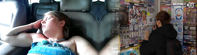 Shy passenger cheats on his GF with crazy blonde taxi driver