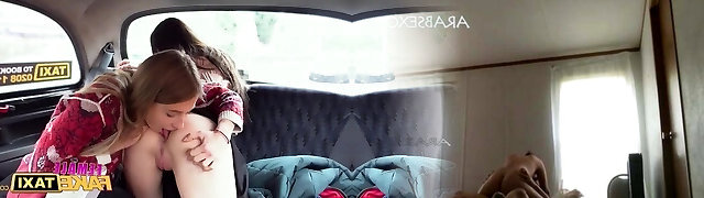 Orgasmic muff licking session with lesbian fake Taxi driver right on the back sit