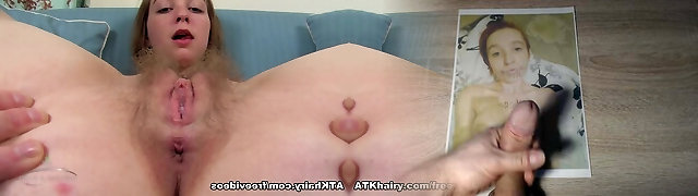 Hottie April Snow placing her gaping cunt on a pulsating wood
