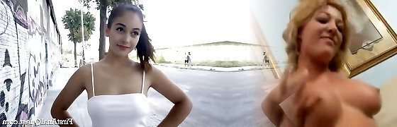 Skinny babe agrees to gargle a stranger for a cash Pov