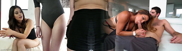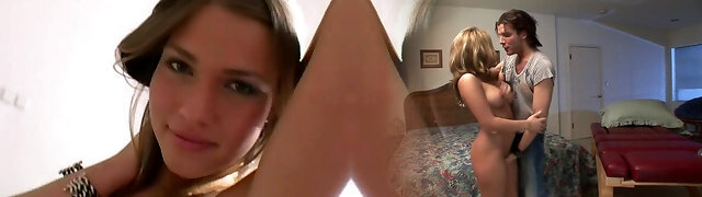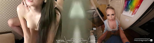 Horny boy fucks stepsister Alex More and her sex-hungry girlfriend