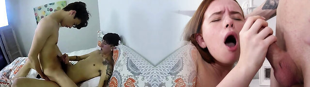 Extreme deepthroat fuck scene featuring raunchy teen chick wearing ponytails