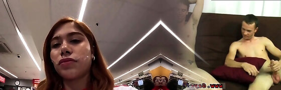 Super-steamy redhead teen get facial after blowjob and hard pounding