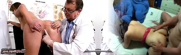 Brown-haired doctor gaping and cumshot