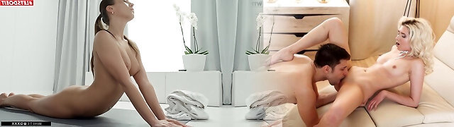 Aroused wife watches her boyfriend buttfuck flexible teen