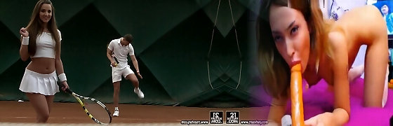 Sporty flexible blondie with ultra-cute pigtails Bella Donna gets rewarded with hot fuck