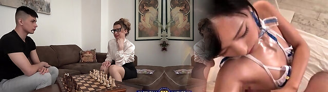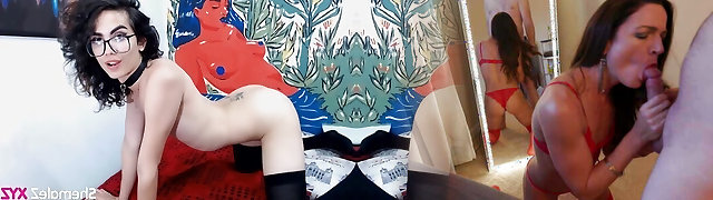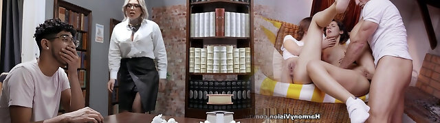 Mommy puts on her strapon to fuck this sweetie in glasses