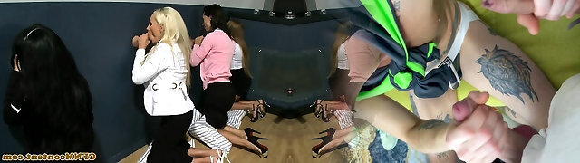 CFNM milfs facialized in gloryhole fun