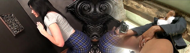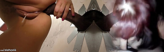 She goes to a gloryhole where she sucks and fucks a dark-hued fuckpole