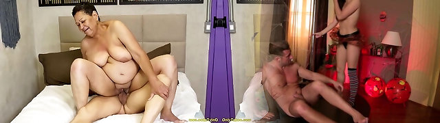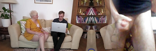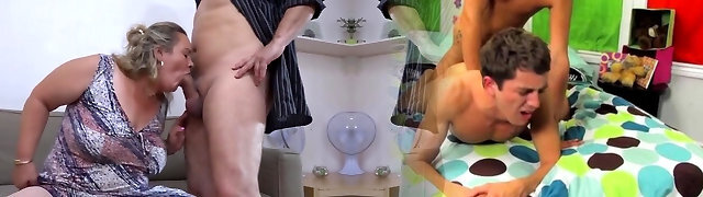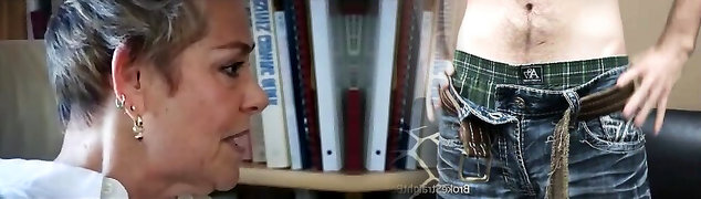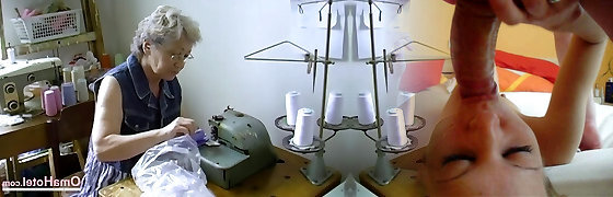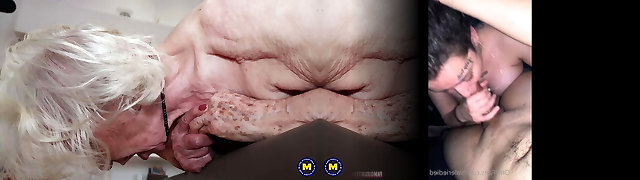 Ancient grandmother with saggy breasts wants ALL of his young cummies
