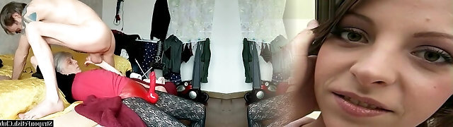Young pretty bitch licks nasty hairy kitten of senior wanton whore