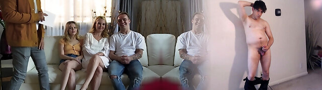CFNM woman work together to get his spunk-pump hard for their sensation
