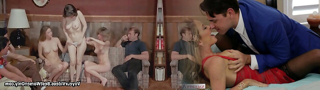A relaxing evening hastily turns into an amateur lesbian group sex
