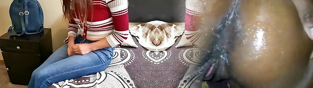 Shy teen reveals to stepdaddy and shows bushy vagina after POV BJ