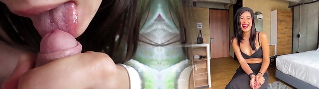 Hot like fire Asian babe in tights blows white tasty dick greedily