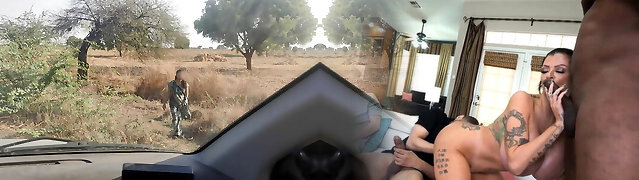Hot busty lady with huge honkers sees the guy having sex, starts masturbating and then offers her body to him, once he is ended