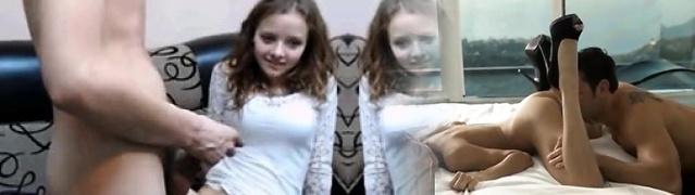Slutty teen fucks her boyfriend while her brother jack off l