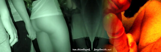 Jeny Smith goes in a club with simless translucent leggings. Teasing a stranger in public place