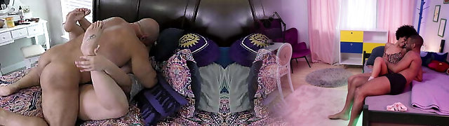 Chubby Daddy And Two Hot Lads Jerking And Kissing