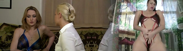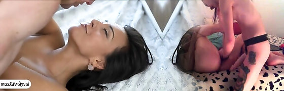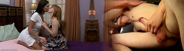 Blonde and brunette lesbians oral orgy