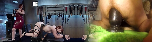 Slave gets his butt fisted and wang pumped by dame-dom
