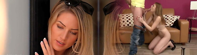 Shy Black-haired Gets a Lesson Of Blowjob And Hot Lesbian Sex From Her Slutty Slim Blond Friend