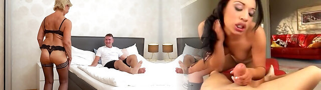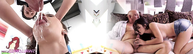 Brunet nympho Morgan seduces old man in the reading guest room