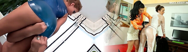 Group sex in shiny pvc lingerie