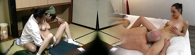 Mature Japanese Maid Kisses Housewife With Passion