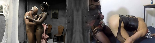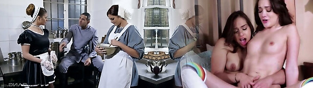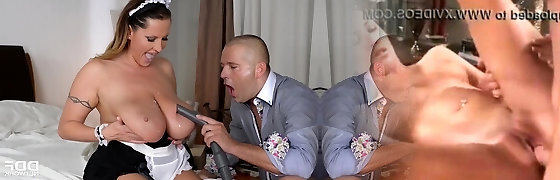 Buxom maid Cathy Heaven wants a three-way with her master and his wifey