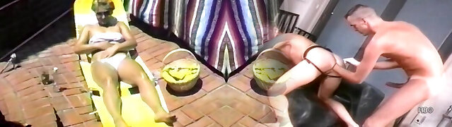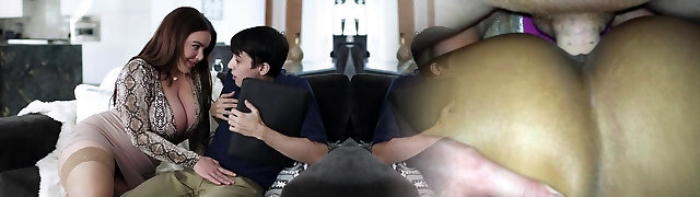 Dynamic cougar with big funbags giving huge dick breast fucking then getting smashed hardcore in mmf sex
