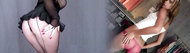Homemade video of a solo nymph wearing nylon stockings having joy