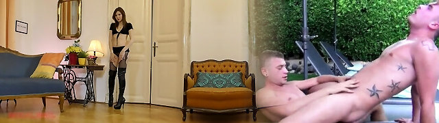 Sissy Neri with big tits dressed in nylon stockings gets fucked