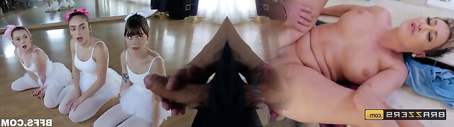 Pretty puny ballerinas suck one cock and get fucked doggy style
