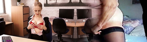 Office whore with pale udders Lucy Lume has a dildo to jerk at work