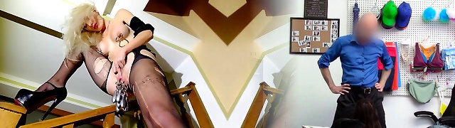 Busty blonde granny with her honeypot pierced, Cammille Austin loves to take a huge boner in the ass