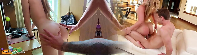 Naturally stacked babes grant stepbro with awesome threesome sensations