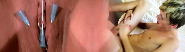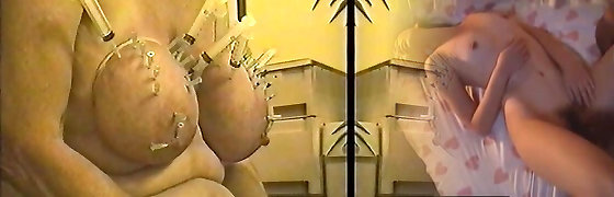 And here is my horny sow with her fat jugs, pierced with a entire bunch of needles.