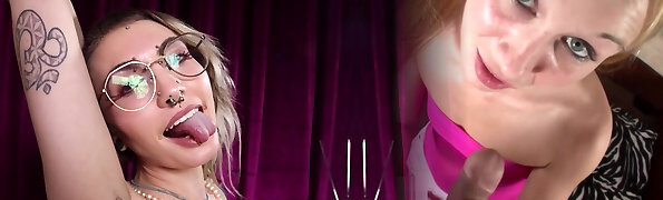Foxy brunette looker stomps all over a hung boy’s pierced dick