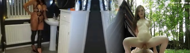 Skinny babysitter Lily sucks her boss's dick and rails him after