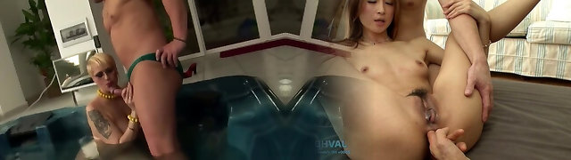 Teen18+ duo first time nude in jacuzzi and they get naughty after sauna