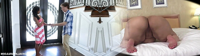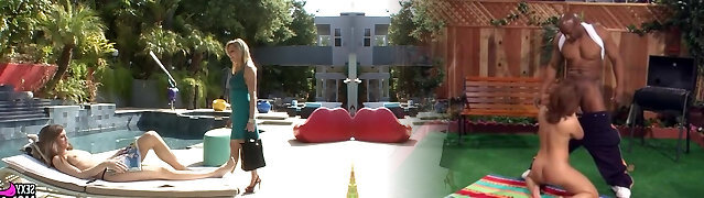 Nude black babe Lala Ivey is swimming in the pool before a crazy sex with her milky neighbor